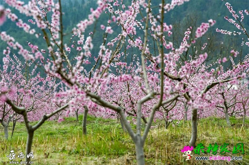 盛开的桃花成就了山间这唯美的风景,让人宛如置身仙境;这片层层叠叠的桃林,满眼的芬芳与春意,游客徜徉其间,好不惬意。