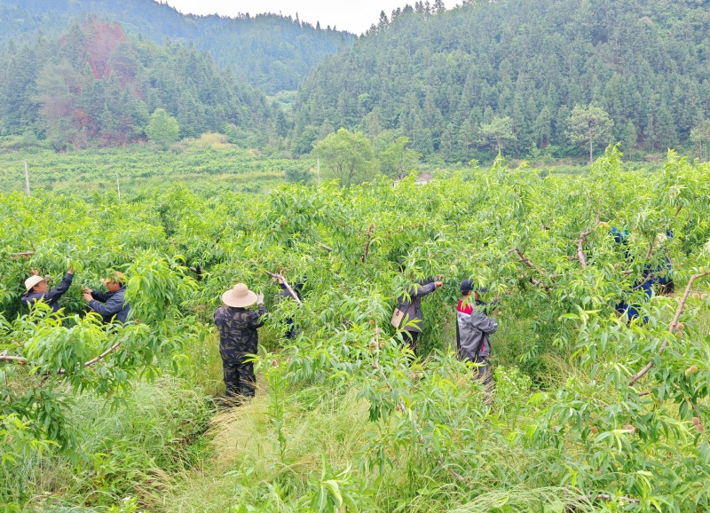 横河村党支部书记演示疏果操作 日前,来榜镇横河村180亩冬桃园里一派忙碌有序的劳作景象。横河村党支部书记王友国带领村“两委”全体班子成员、20多名党员和群众穿梭于桃林间,开展疏果工作,以实际行动为冬桃丰收和村级集体经济增收打下坚实基础。 硕果累累的冬桃树 疏果是提高冬桃品质的关键环节。过多的幼果会分散果树的养分,导致果实大小不均、品质下降。为产出高品质商品桃,增强市场竞争力,横河村抢抓农时,精心组织此次疏果行动。大家严格按照技术标准,仔细剔除多余幼果,确保留下的每一颗幼果都能获得充足养分,成长为优质果实。 党员、群众进行疏果操作 在疏果现场,王友国一边示范操作,一边向大家讲解疏果要点和技巧,“疏果要遵循‘去小留大、去弱留强、去病留健’的原则,只有把基础工作做扎实,才能实现冬桃的高产优产。”党员充分发挥先锋模范作用,耐心细致地完成每一株桃树的疏果工作。群众个个干劲十足,积极参与,现场气氛热烈。 党员、群众进行疏果操作 发展冬桃产业是横河村壮大村级集体经济的重要举措。近年来,横河村依托当地自然条件,因地制宜发展冬桃种植,通过科学管理和技术升级,不断提升冬桃品质;同时,积极探索“党支部+合作社+农户”的发展模式,将分散的农户组织起来,实现统一管理、统一销售,有效降低了生产成本,大幅提高了经济效益。 党员、群众冬桃园疏果现场 此次疏果工作不仅是对冬桃品质的保障,更是横河村发展集体经济、助力乡村振兴的生动实践。通过大家的共同努力,预计今年冬桃产量和品质将实现双提升,为村级集体经济带来可观收益。 下一步,横河村将继续做好冬桃的后期管理工作,同时积极拓展销售渠道,通过线上线下相结合的方式,进一步提升横河冬桃的知名度和市场占有率,让冬桃产业成为村民增收致富的“金饭碗”,为乡村振兴持续注入新的活力。 |