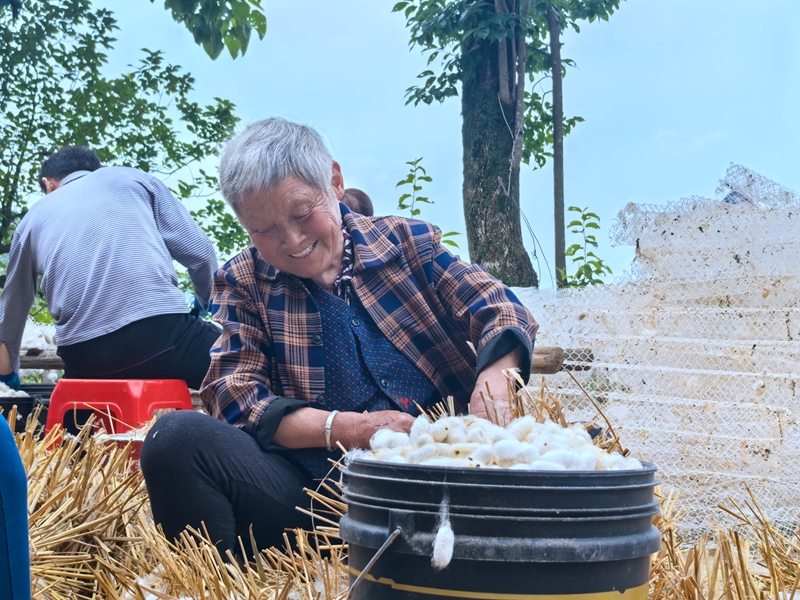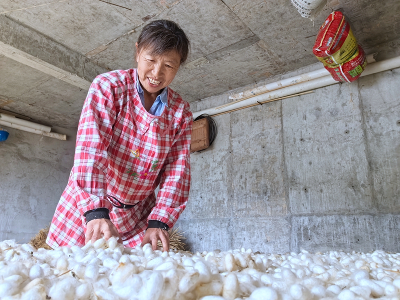 王南枝正在整理蚕茧 (融媒体中心记者 余飞 杨辉)初夏时节,来榜镇蚕桑产业迎来丰收季。该镇蚕茧产量突破百万斤,创历史新高。在蚕农家中、合作社收购点、桑树基地,一片丰收景象不仅为当地农户带来了可观的经济收益,更为乡村振兴注入了新的活力。 在来榜镇关河村,蚕桑产业一直是当地农户的重要经济来源。王南枝是当地一位普通的来榜镇村民,这两天,她都忙着在自家院子里摘蚕茧。她小心翼翼地将一颗颗洁白如玉的蚕茧从蚕簇上摘下,脸上洋溢着丰收的喜悦。 “我家今天开了两张种,挺好的,估计这个价格能卖到1万多点。”来榜镇关河村村民王南枝告诉记者。 在来榜镇关河村蚕茧合作社收购现场,合作社的工作人员正忙着对蚕茧进行分级、称重、打包。据合作社负责人介绍,今年蚕茧的收购价格稳定,每张蚕种比往年价格能提高1000元以上。 “我们合作社今年为蚕农提供了一个保底价格,相较于市场的价格又提升10%,也为蚕农提供了一个价格提升部分,根据蚕农的活蛹率,来提升价格。”岳西县关河村党支部书记、合作社负责人胡孝军表示。 目前,春蚕采收基本完成,来榜镇已经开始筹备二期蚕茧的养殖工作。在科技特派员的指导下,农户们正忙着种植桑叶,为下一轮养蚕做好准备。 “为了养好夏季蚕,我们选择这个时间节点让农户进行桑园管理,进行清沟排水施肥,更好地养好夏蚕。”来榜镇科技特派员朱小琴说。 据了解,来榜镇现有优质桑园13000余亩,有4100余户蚕农栽桑养蚕。仅2024年,全镇饲养蚕种10175盒,产鲜茧508吨,产值2540万元,蚕农户均养蚕收入达4600元。 “下一步,来榜镇将在物尽其用、全链开发、多元融合上下功夫、做文章,努力实现蚕桑产业‘破茧成蝶’,走出一条强镇富民新‘丝’路。”来榜镇党委副书记、镇长方志德表示。 蚕茧图 蚕茧图 关河村村民正在家中处理蚕茧 蚕茧图 |