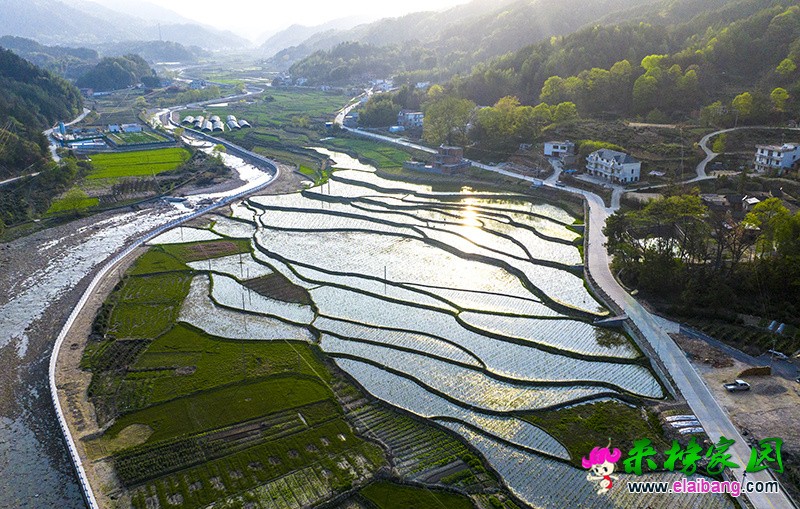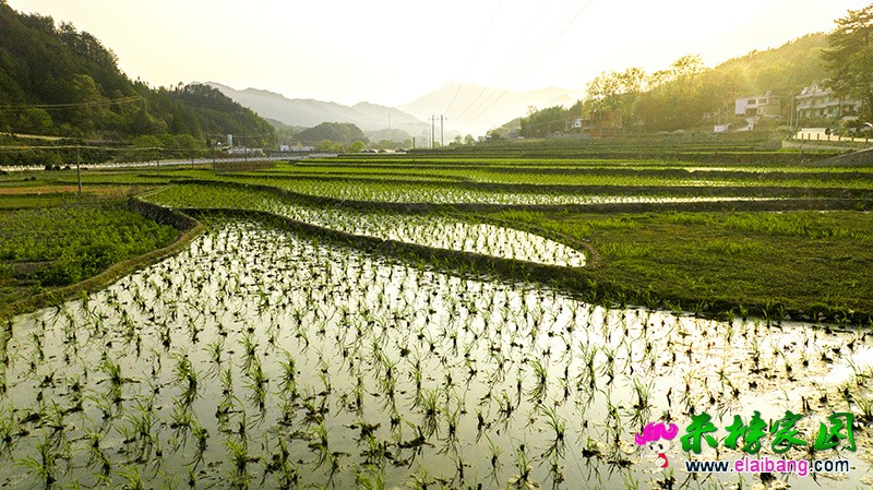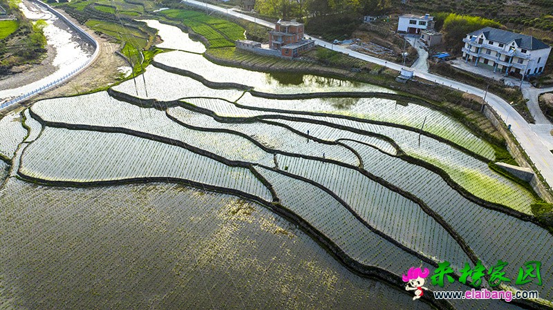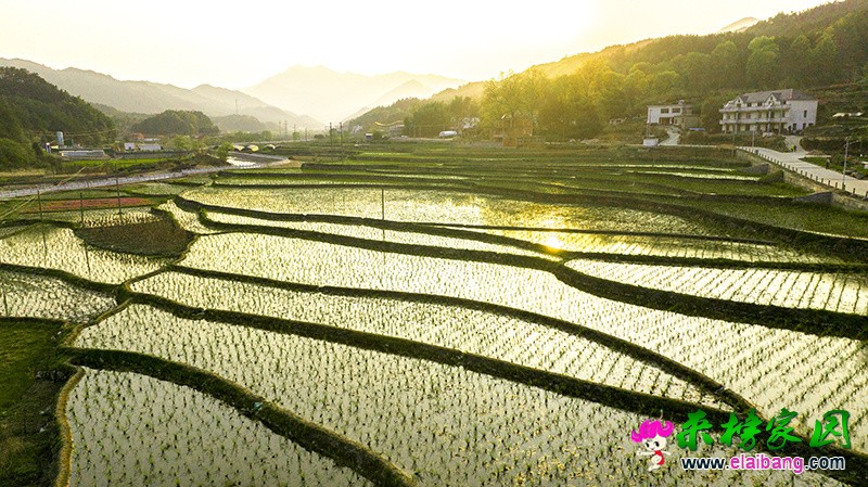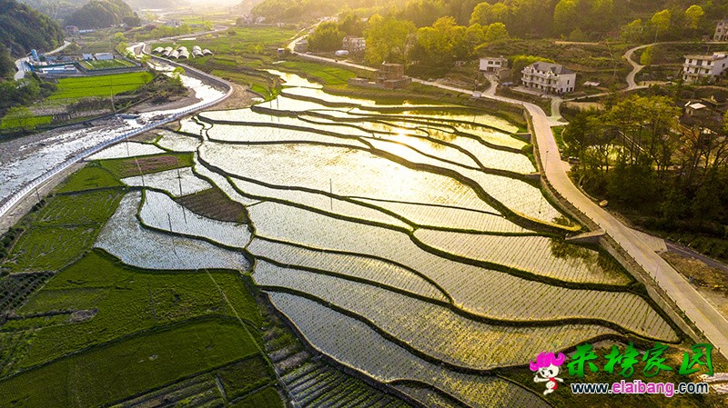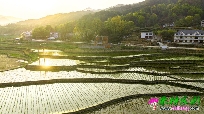 安庆市岳西县青天乡青天村,日头渐渐西下,从树的枝头穿过,将余晖洒在田野里,波光粼粼。茭白苗随风飘摇,在碧波里荡漾,与周边的道路、民居交相辉映,构成一幅美丽的春日画卷。(汪炅 程小龙)