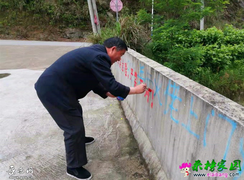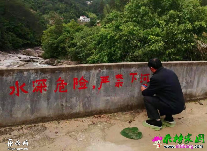 在5月20日上午,余良保同志还帮助村两委到组入户发放防汛明白纸,给大家普及防汛知识,并用红色油漆在村重点水域、重要路段的显眼位置书写“水深危险 严禁下河”等防溺水标语。