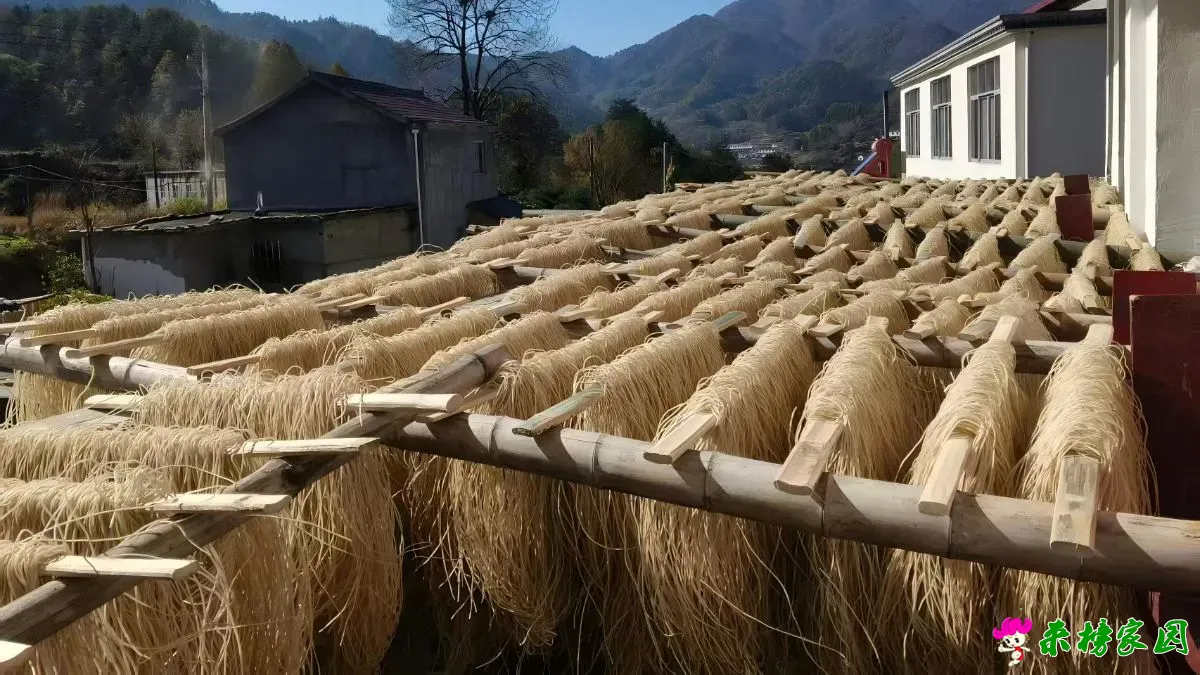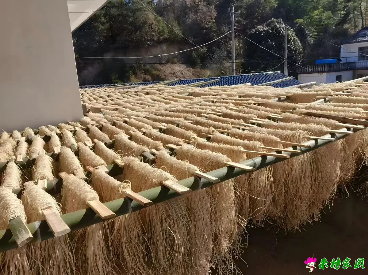 这些粉丝,源自石佛村村民在有机茶园里套种的优质有机红薯。从种植、采挖、收购、打粉、晒粉、加工制作,全程遵循传统技艺,不添加任何化学物质,确保粉丝最本真的风味与健康品质。经过人工多道工序制作而成的有机红薯粉丝宛如缕缕“银丝”悬挂在晾晒架上。 晾晒,是成就粉丝爽滑筋道口感的关键一步。充足的日照和山间清新的空气,赋予了石佛村有机红薯粉丝独特的韧性与阳光的味道。晒干后的粉丝,色泽自然温润,久煮不烂,无论是炖肉、涮火锅还是凉拌,都能吸饱汤汁,鲜香满口。 这一挂挂粉丝,不仅凝聚着石佛村“两委”齐心协力壮大村集体经济的心血,更是石佛村民致富增收的“金丝银线”。它承载着家乡的味道,也传递着健康、有机的生活理念。 |