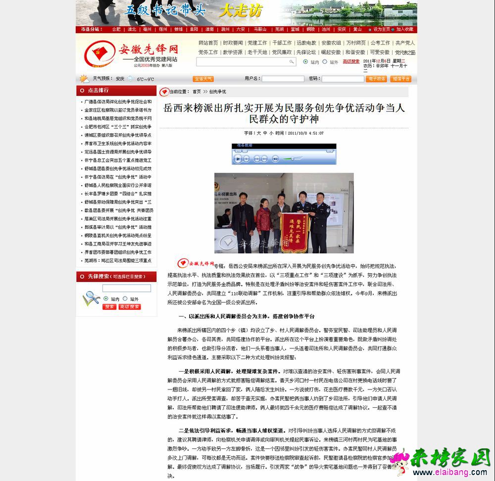 安徽先锋网:岳西来榜派出所扎实开展为民服务创先争优活动争当人民群众的守护神 -- 岳西公安局来榜派出所在深入开展为民服务创先争优活动中,始终把规范执法,提高执法水平、执法质量和执法效果放在首位,以“三项重点工作”和“三项建设”为抓手,努力争创执法示范单位,打造为民服务金质品牌。特别是在处理矛盾纠纷等治安案件和轻伤害案件工作中,联合司法所、人民调解委员会,共同建立“110联动调解”工作机制,注重引导和帮助群众依法维权。今年9月,来榜派出所还被公安部命名为全国一级公安派出所。 一、以派出所和人民调解委员会为主体,搭建创争协作平台 来榜派出所辖区内的四个乡(镇)均设立了乡、村人民调解委员会。警务室民警、司法助理员和人民调解员合署办公,各司其责,共同搭建协作的平台。派出所在这个平台上扮演着重要角色,既做矛盾纠纷调处的积极参与者,也做引导分流者,他们一头系着当事人,一头连着司法所和人民调解委员会,共同打通群众利益诉求绿色通道。主要采取以下二种方式处理纠纷类报警: 一是积极采用人民调解,处理疑难复杂案件。对难以查清的治安案件、轻伤害刑事案件,会同人民调解委员会采用人民调解的方式就损害赔偿调解结案。青天乡河口村一村民在电信公司在村更换电话线时要了一捆旧线,却被另一村民拿回了家,俩人随后发生纠纷。一方说被打伤,花去医疗费数千元,一方矢口否认动手打人。派出所受案调查,却苦于查无实据,办案民警把俩当事人约到了乡司法所,引导他们申请人民调解,司法所帮助他们聘请了司法援助律师。俩人最终就四千余元的医疗费赔偿达成了调解协议。一起查不清的治安案件就这样得以案结事了。 二是依法引导利益诉求,畅通当事人维权渠道。对引导纠纷当事人选择人民调解的方式但调解不成的,建议其聘请律师,向检察机关申请调停或向审判机关提起民事诉讼。来榜镇三河村两村民为宅基地的事激烈争吵。一方动手致另一方左脚骨折,这是一个因邻里纠纷引发的轻伤害案件。办案民警同村人民调解员多次上门调解,可每次都是无功而返。案件快要移送检察院审查起诉前,民警邀请县检察院的检察官参加调解。最终促使双方达成了调解协议,当场履行。引发两家“战争”的导火索宅基地问题也一并得到了妥善解决。 二、以“现场第一,维权第一”为原则,明确创争方法措施 事发现场是第一要素,引导和帮助群众维权是第一要务。多年来,来榜所在矛盾纠纷排查调处工作中,切实把握好“现场第一、维权第一”这个原则。一是调查取证及时。每当接到报警后,值班民警在第一时间赶到事发现场认真及时地进行调查取证,严格遵守《公安机关执法细则》,走完必经程序,完成规定动作,证据收集合法有效、齐全完备,整理形成完整证据材料卷宗。二是法理评说到位。办案民警、人民调解员坚持法、理、情的有机统一,不急不躁,悉心听取当事人诉求,设身处地为当事人着想,耐心说法、评理、道情,引导当事人依法维权。让群众感受到法律的权威、尊严,感受到派出所的关心、温暖。 三是部门协作联动。派出所、司法所、人民调解委员会等单位人员有责任意识,大局意识,服务意识,不推诿,不扯皮,形成工作合力,把群众的事儿当自己的事来办。来榜镇枫树村一村民家楼房封顶,却因其伸手关闭施工队发电机时突然倒地身亡,使喜事办成了丧事。工地一片混乱,悲痛的家属围住了不知所措的施工队。值班的教导员和办案民警迅速赶到现场,将情况报告给了县局110指挥中心和镇领导。办案民警在镇领导带领下采取应急处理措施,连续二天二夜坚守在事发现场,一边调查取证,一边和司法助理员、人民调解员一起引导双方依法维权,终于控制了事态,达成了调解协议。 三、以“群众满意,组织满意”为标准,检验创争实际成效 2008年以来,来榜派出所会同司法所、乡(镇)和村人民调解委员会共排查化解矛盾纠纷九百五十余起,调解轻伤害案件十余起。三年间,所有矛盾纠纷都得到及时有效化解,没有发生一起涉案上访事件。来榜所通过抓工作规范,抓优质服务,抓队伍建设和内务管理,执法规范化水平不断提高、保一方平安的能力不断加强、内部管理水平不断提升、警民关系更加和谐,以实际行动维护了法律权威,维护了群众利益,维护了社会稳定。 安徽先锋网岳西分站供稿 |