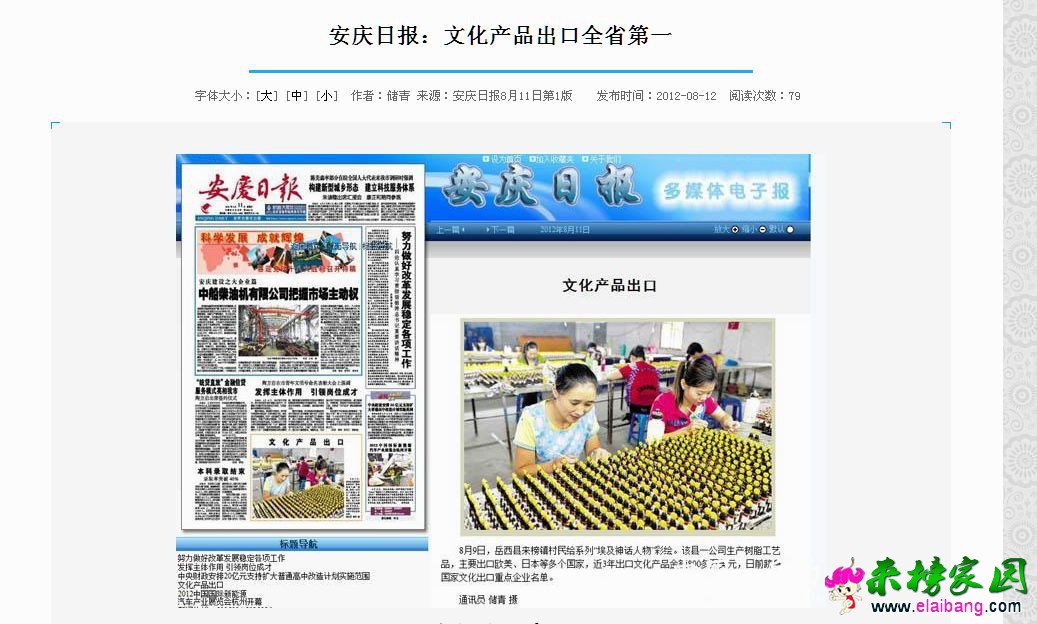 2012年8月11日安庆日报----文化产品出口
