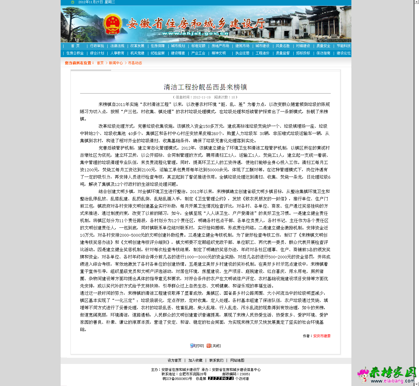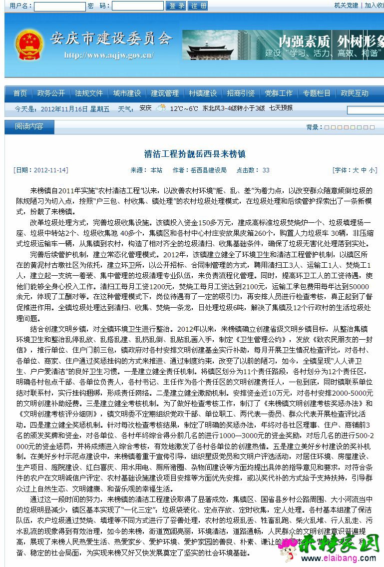 - - 清洁工程扮靓岳西县来榜镇 本文来自安庆市建设委员会,原文地址:http://www.aqjw.gov.cn 来榜镇自2011年实施“农村清洁工程”以来,以改善农村环境“脏、乱、差”为着力点,以改变群众随意倾倒垃圾的陈规陋习为切入点,按照“户三包、村收集、镇处理”的农村垃圾处理模式,在垃圾处理和后续管护探索出了一条新模式,扮靓了来榜镇。 改革垃圾处理方式,完善垃圾收集设施。该镇投入资金150多万元,建成高标准垃圾焚烧炉一个、垃圾填埋场一座、垃圾中转站2个、垃圾收集池 40多个,集镇区和各村中心村庄安放果皮箱260个,购置人力垃圾车 30辆,非压缩式垃圾运输车一辆,从集镇到农村,构造了相对齐全的垃圾清扫、收集基础条件,确保了垃圾无害化处理落到实处。 完善后续管护机制,建立常态化管理模式。2012年,该镇建立健全了环境卫生和清洁工程管护机制,以镇区所在的黄泥村古墩社区为依托,建立环卫所,以公开招标、合同制管理的方式,聘用清扫工3人、运输工1人、焚烧工1人,建立起一支统一着装、集中管理的垃圾清理专业队伍,来负责流程化管理。同时,提高环卫工人的工资待遇,使他们能够全身心投入工作。清扫工每月工资1200元,焚烧工每月工资达到2100元,运输工承包费用每年达到50000余元,体现了工酬对等。在这种管理模式下,岗位待遇有了一定的吸引力,再安排人员进行检查考核,真正起到了督促推进作用。全镇垃圾处理达到清扫、收集、焚烧一条龙,日处理垃圾6吨,解决了集镇及12个行政村的生活垃圾处理问题。 结合创建文明乡镇,对全镇环境卫生进行整治。2012年以来,来榜镇确立创建省级文明乡镇目标,从整治集镇环境卫生和整治乱停乱放、乱搭乱建、乱扔乱倒、乱贴乱画入手,制定《卫生管理公约》,发放《致农民朋友的一封信》,推行单位、住户门前三包,镇政府对各村安排文明创建基金实行补助,每月开展卫生情况检查评比,对各村、各单位、商家、住户通过奖惩挂钩的方式来推进、通过制度约束,改变了以前的陋习,如今,全镇呈现“人人讲卫生、户户爱清洁”的良好卫生习惯。一是建立健全责任机制。将镇区划分为11个责任路段,各村划分为12个责任区,明确各村包点干部、各单位负责人,各村书记、主任作为各个责任区的文明创建责任人,一包到底,同时镇联系单位结对联系村,实行挂钩捆绑,形成责任网络。二是建立健全激励机制。安排资金近10万元,对各村安排2000-5000元的文明创建补助经费。三是建立健全考核机制。为了做好检查考核工作,制订了《来榜镇文明创建考核奖惩办法》和《文明创建考核评分细则》,镇文明委不定期组织党政干部、单位职工、两代表一委员、群众代表开展检查评比活动。四是建立健全奖惩机制。针对每次检查考核结果,制定了明确的奖惩办法,年终对各社区理事、住户、商铺前3名的颁发奖牌和资金,对各单位、各村年终综合得分前几名的进行1000—3000元的资金奖励,对后几名的进行500-2000元的资金惩罚,并将成绩进入综合考核,有效地激发了各村各单位的创建热情。五是建立美好乡村建设的奖补机制。在美好乡村示范点建设中,来榜镇着重于宣传引导,组织星级党员和文明户评选活动,对居住环境、房屋建设、生产项目、庭院建设、红白喜庆、用水用电、厕所猪圈、杂物间建设等方面均提出具体的指导意见和要求,对符合条件的农户在文明诚信户评定、农村基础设施建设项目安排等方面优先安排,或以奖代补的方式给予支持扶持,引导群众过上自然生态、文明健康、和谐乐观的幸福生活。 通过这一段时间的努力,来榜镇的清洁工程建设取得了显著成效,集镇区、国省县乡村公路周围、大小河流当中的垃圾明显减少,镇区基本实现了“一化三定”:垃圾袋装化、定点存放、定时收集,定人处理。各村基本组建了保洁队伍,农户垃圾通过焚烧、填埋等不同方式进行了妥善处理,农村的垃圾乱丢、牲畜乱跑、柴火乱堆、行人乱走、污水乱流的现象得到有效治理,如今的来榜,街道宽阔亮丽,环境清洁,道路通畅,人民群众的文明创建意识普遍提高,展现了来榜人民热爱生活、热爱家乡、爱护环境、爱护家园的善良、朴素、谦让的淳厚本质,营造了安定、和谐、稳定的社会局面,为实现来榜又好又快发展奠定了坚实的社会环境基础。 本文来自安庆市建设委员会,原文地址:http://www.aqjw.gov.cn