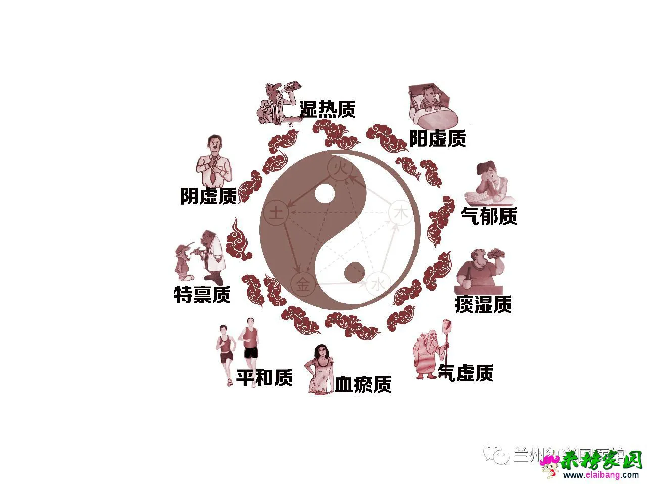 中医将人的体质大体分为九类,除去相对健康的平和体质外,还有另外八种处于所谓亚健康状态的体质类型。包括:阳虚体质、阴虚体质、气虚体质、痰湿体质、湿热体质、血瘀体质、特禀体质、气郁体质。下面我们从形体特征、心理特征、常见表现、发病倾向等方面深刻认识九型体质。