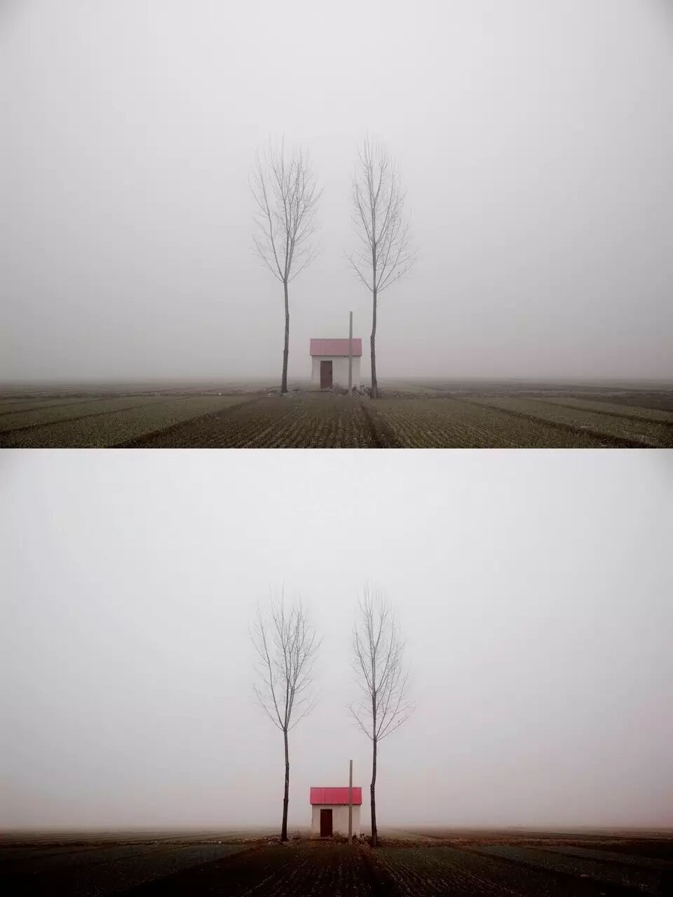 在雾天、雪天拍摄也是个不错的主意。大自然的力量强行把世间万物化成了统一的色调,是拍极简风格的好机会。