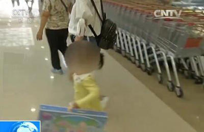 在江西省赣州市的一家购物超市的书籍销售区,一位家长正在认真看书,身后的小孙女被模拟“骗子”盯上,不到2分钟,这位小朋友就在玩具的诱惑下,跟着陌生人快速走出了超市。