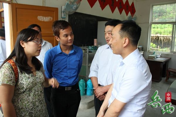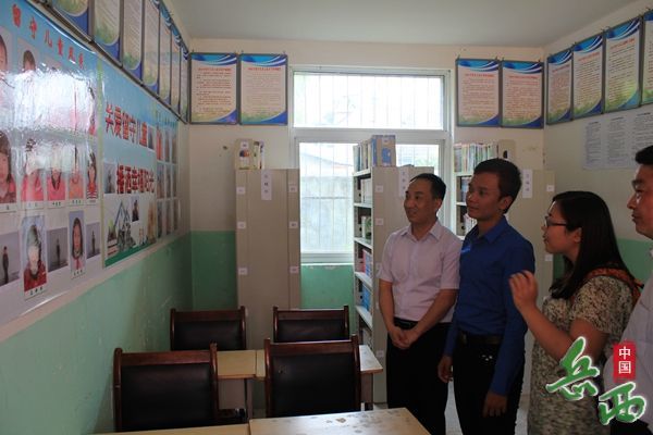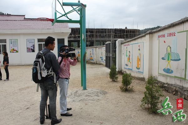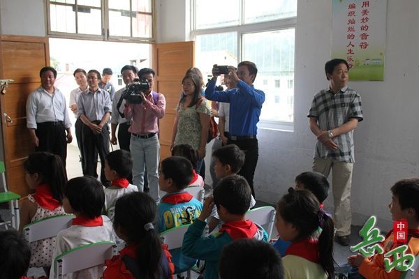 下午,摄制组一行在镇党委书记胡天南、镇长汪训卫的陪同下,来到位于三河村的立人希望小学,与学前班老师及小朋友们做游戏,和同学们一起听老师讲课、看音乐老师和孩子互动,还参观了学校图书室、学生营养餐储存室和学校食堂,并和全校师生合影留念。